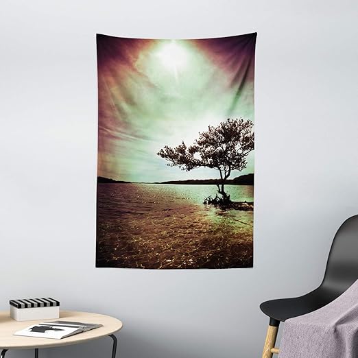 Amazon Com Ambesonne Tapestry Wall Hanging Lonely Tree Scene For