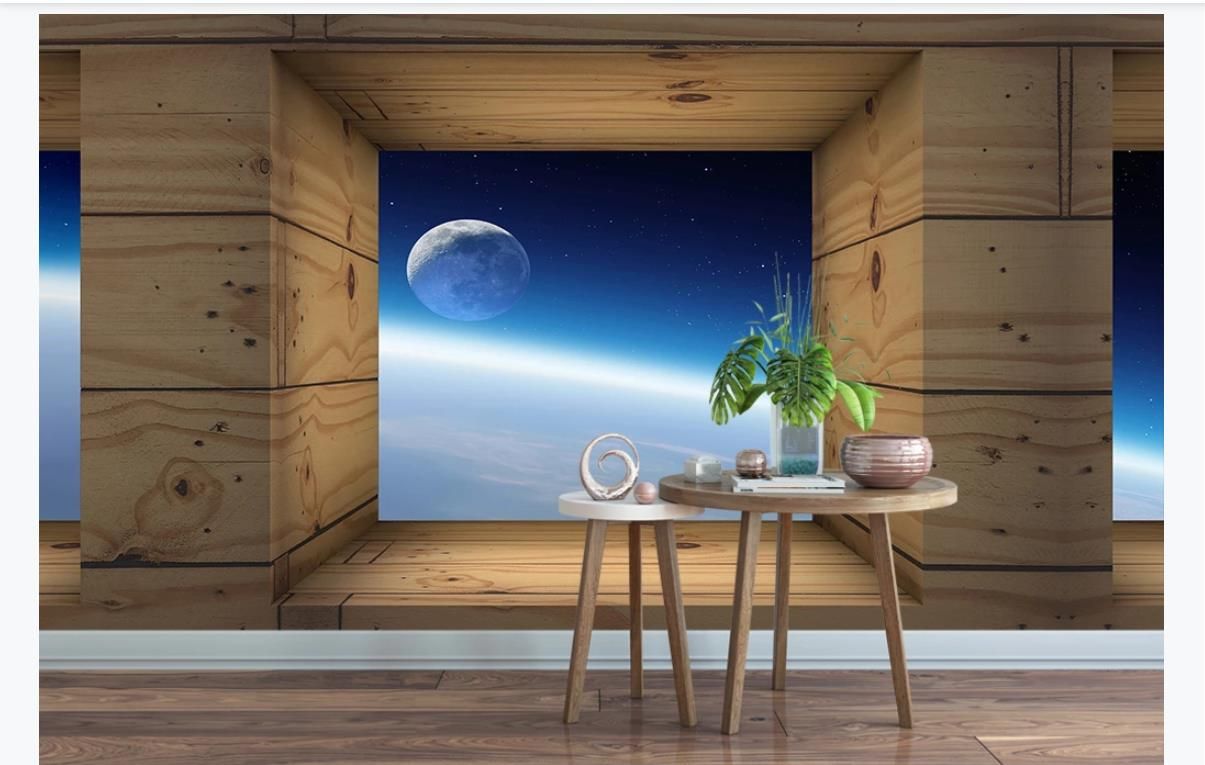Modern Geometric Image Stereo Blue Starry Sky Moon 3d Murals
