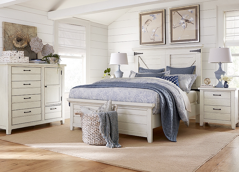 Jofran Madison County Barn Door Bedroom Set In Vintage White