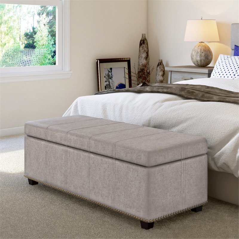 Simpli Home Kingsley Faux Leather Bedroom Bench With Storage In