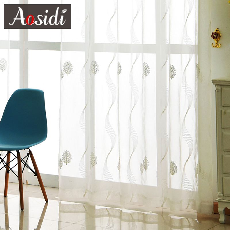 2020 White Tree Embroidered Tulle For Living Room Wave Pattern
