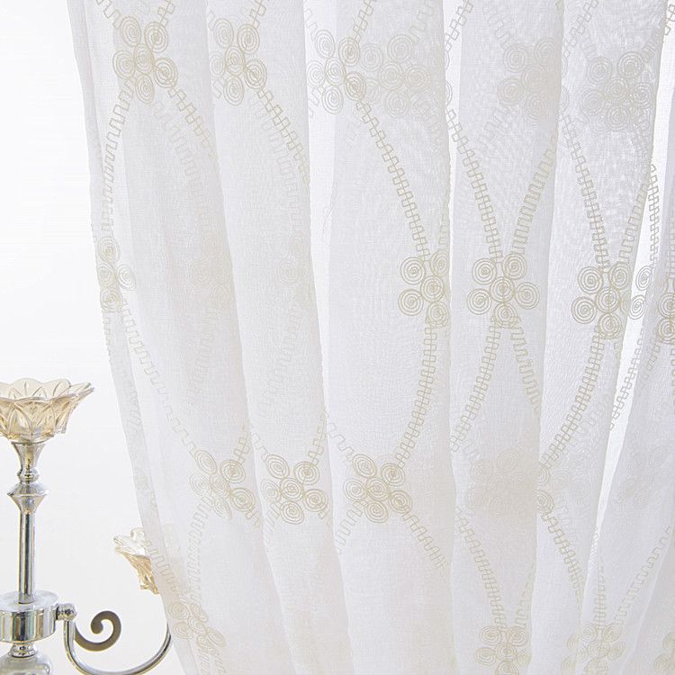 White Floral Pattern Sheer Curtains Of Embroidery Style