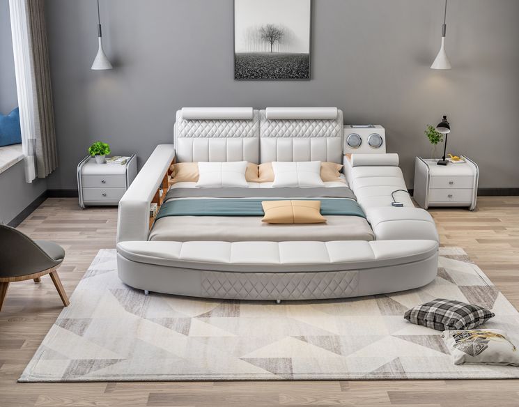 Real Genuine Leather Bed With Massage Double Beds Frame King
