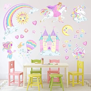 Xuzirui Unicorn Wall Decor Sticker Decals Girls Bedroom Wall