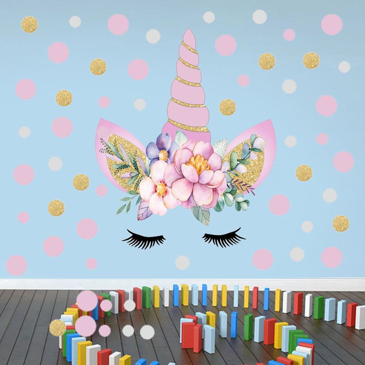 New Ideas Golden Dot Unicorn Wall Sticker Living Room Bedroom Wall