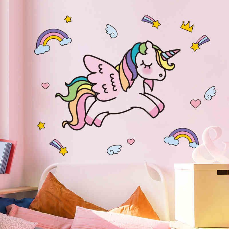 Cartoon Unicorn Wall Stickers For Kids Rooms Girls Rooms Bedroom