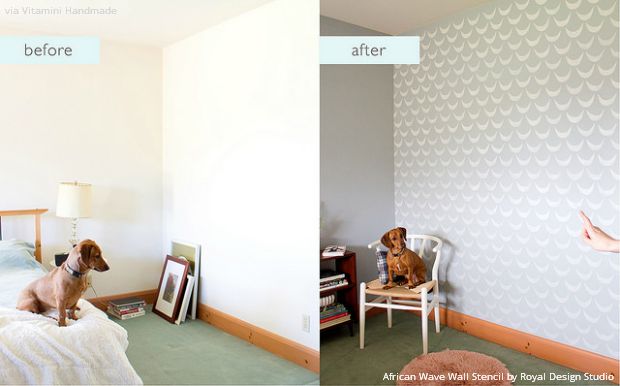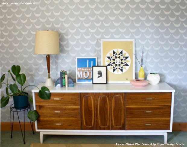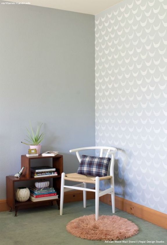 Modern Mid Century Room Makeover Stenciled Accent Wall Hometalk