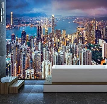Amazon Com Hwhz Custom 3d Mural Wallpaper Modern City Night View