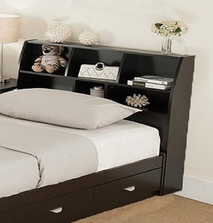 Stylish Storage Shelves Headboard Dark Brown Queen Bed Modern