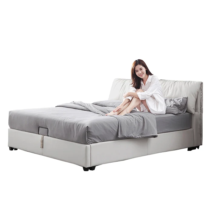 Modern Bedroom Furniture Led Leather Sleigh Queen Bed Frame