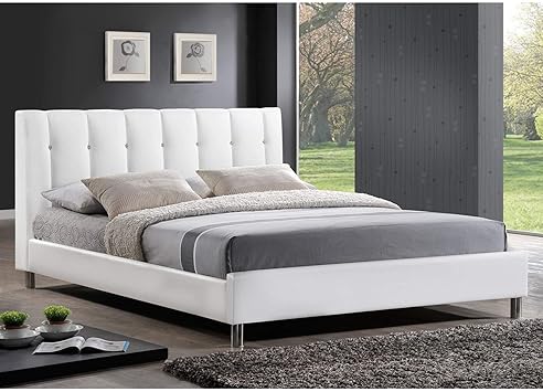 Bianca Modern Bed With Tufted Headboard White Queen Baxton