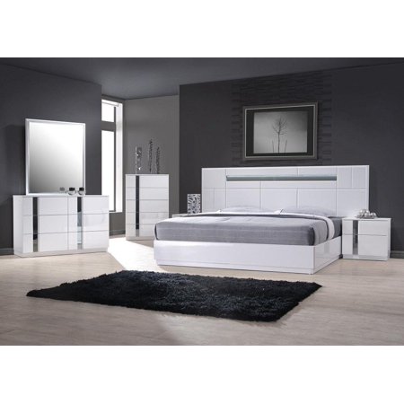 Palermo Modern Bedroom Set White Lacquer 5 Piece Set