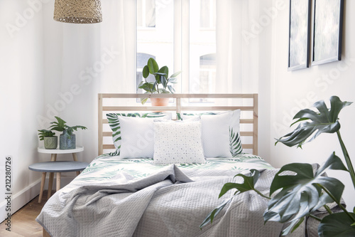 Stylish Modern Scandinavian Sunny Bedroom Plants Floral Pattern