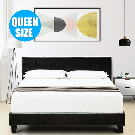 Amazon Com Queen Size Faux Leather Platform Bed Frame Slats