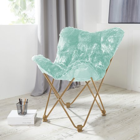 Comfy Aqua Faux Fur Butterfly Folding Chair Seat Teens Dorm
