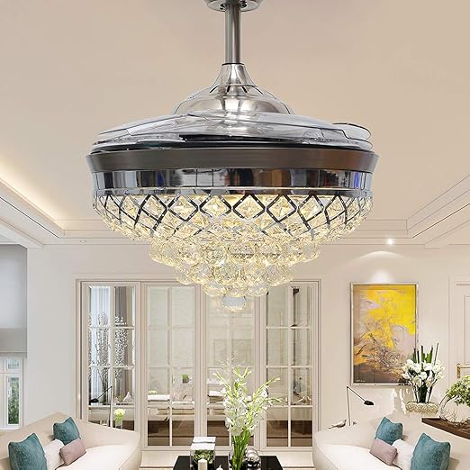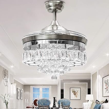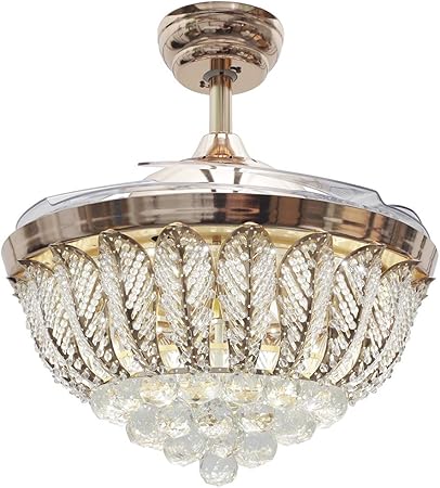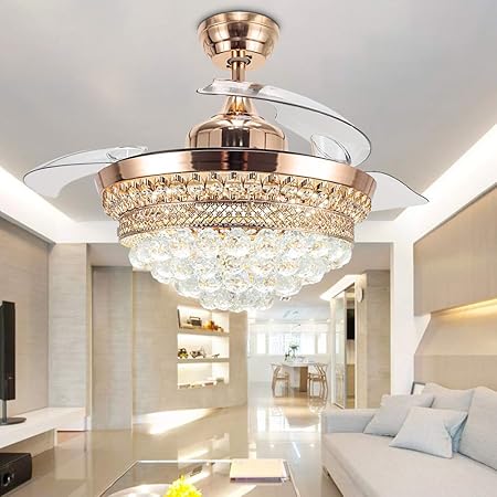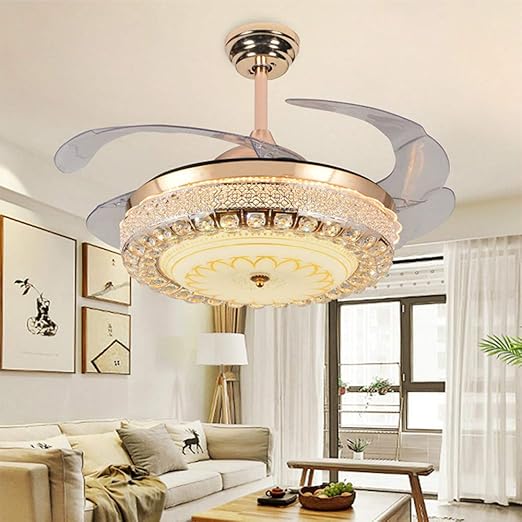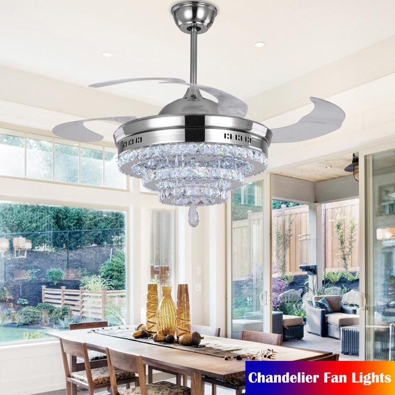 42 Inch Luxury Crystal Ceiling Fans With Light Retractable Blades