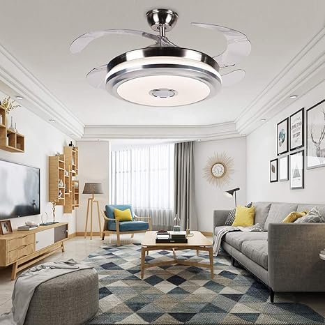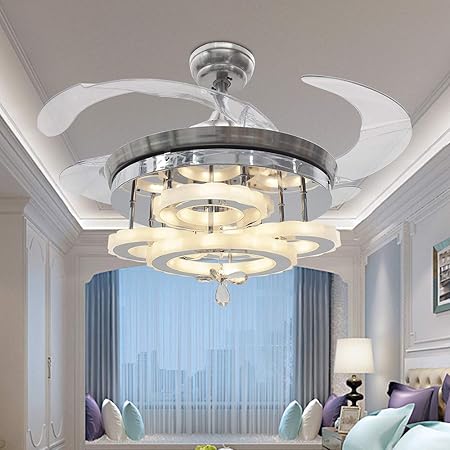 42 Modern Led Invisible Ceiling Fan Chandelier Bedroom Living