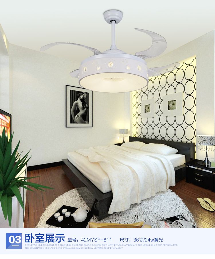 42 Remote Control Chandeliers Bedroom Invisible Ceiling Fan Home