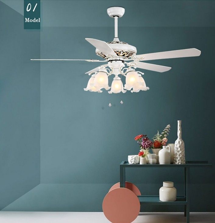 2020 Retro White Led Lights Chandelier Fan Minimalist Living Room