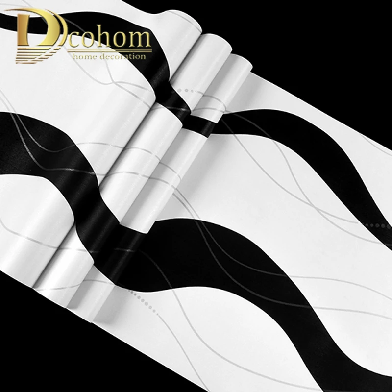 High Quality Black And White Silver Stripes Luxury Modern Embossed