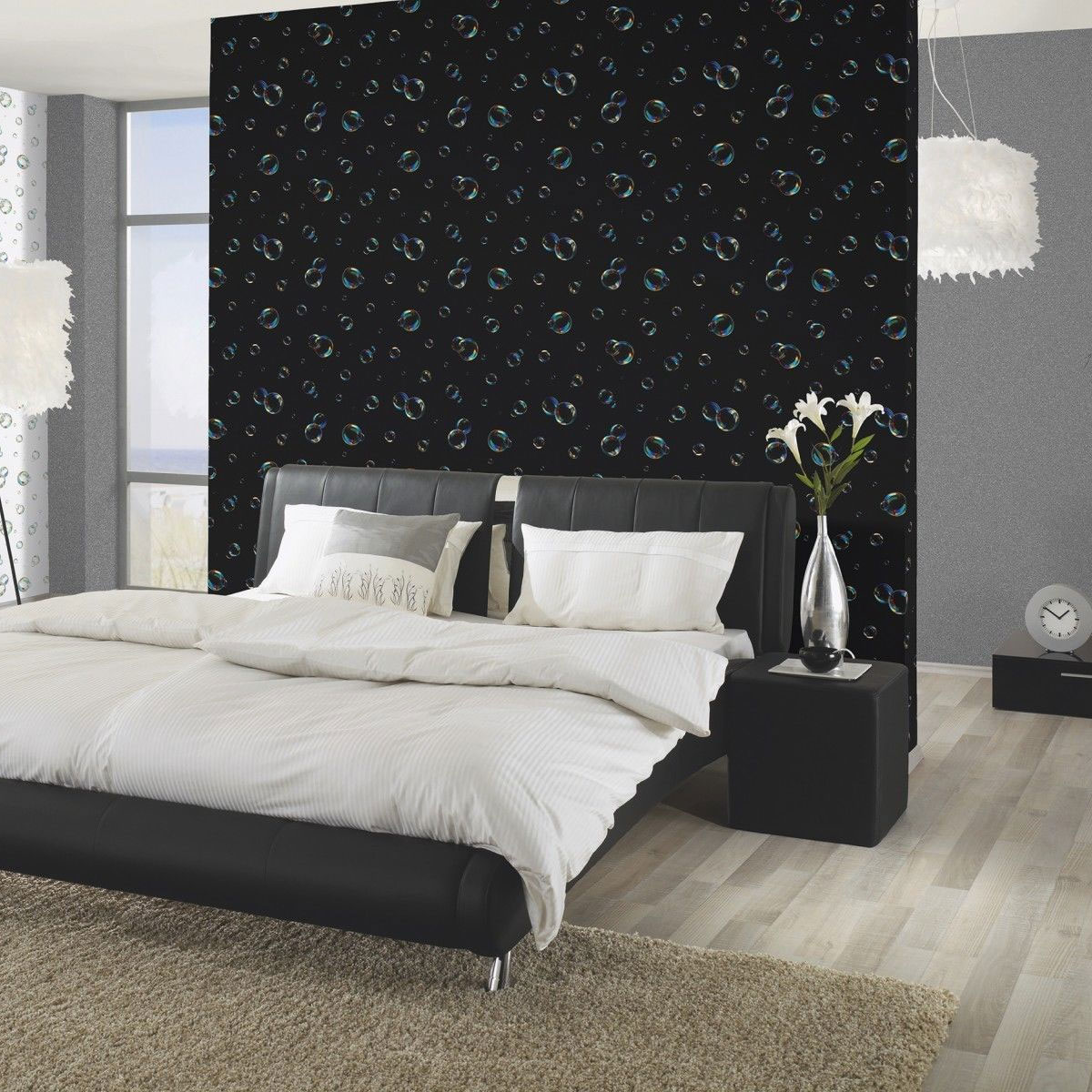 Bubbles Wallpaper Aqua Black Rainbow Multi Luxury Modern Paste The
