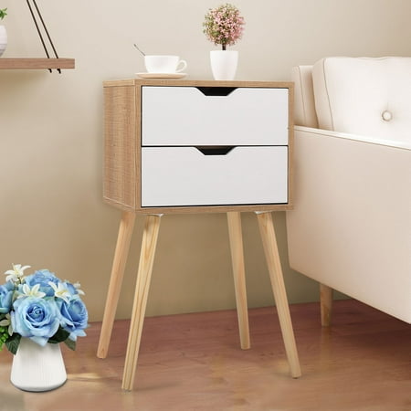 Hurrise Modern Nightstand Side End Table With 2 Drawers Wooden