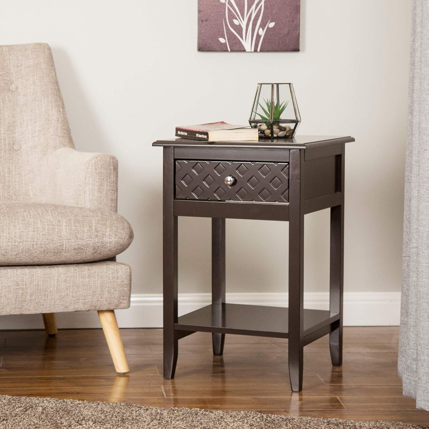 New 1 Drawer Nightstand End Table Espresso Bedroom Dorm Furniture