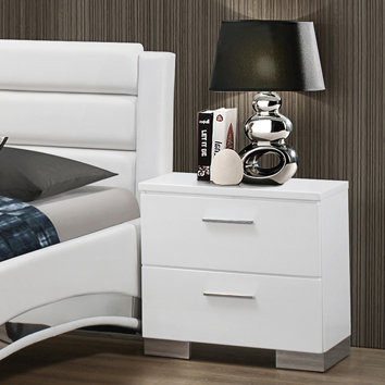 Glossy White Sleek Modern Contemporary Nightstand End Table With
