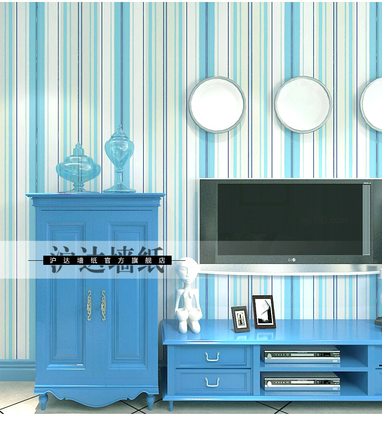 Mediterranean Non Woven Vertical Stripes Wallpaper Modern