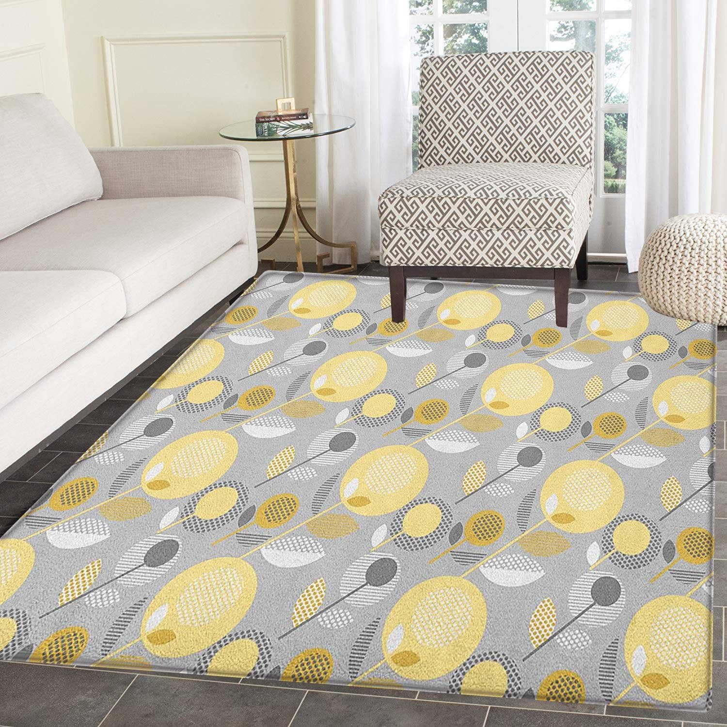 Amazon Com Living Room Round Rugs Grey And Yellow Street Art