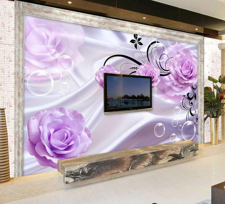 Shop Custom Photo Wallpaper 3d Floral Purple Rose Silk Background