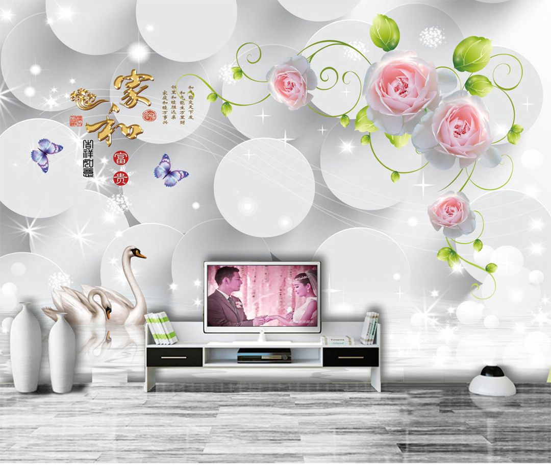 Wapel 3d Wallpaper Fashion Modern Rose Romantic Swan 3d Tv